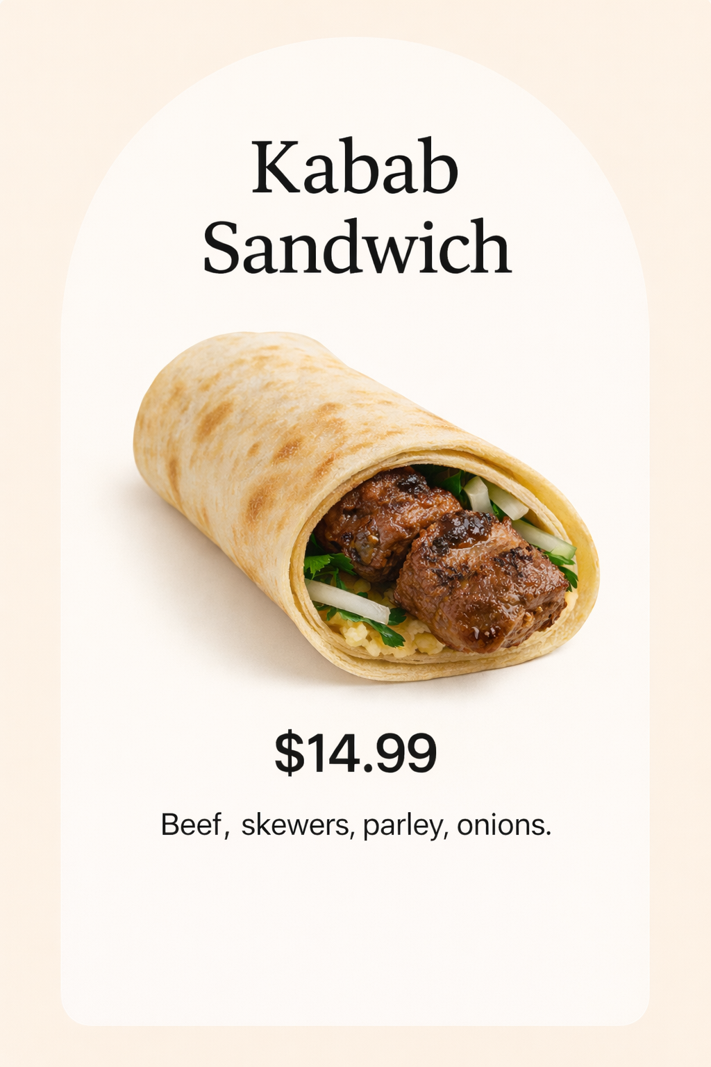 Cold starters Hot starters SAJ Traditional Dishes Eggs Handhelds From the Grill Salad Desert Sides Drinks